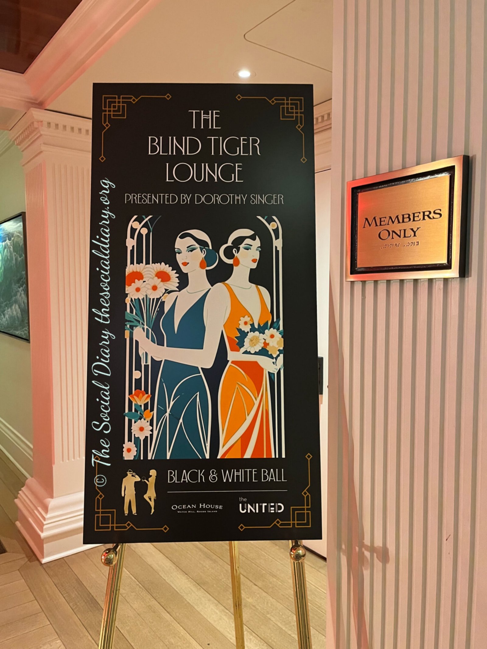 Cigarette girls dressed in flapper getup greeted guests. Glasses of wine served from trays and hors d’oeuvres, including mini lobster rolls made the rounds, as guests mingled in the lobby and laughed with great merriment in the interactive “photo booth.”